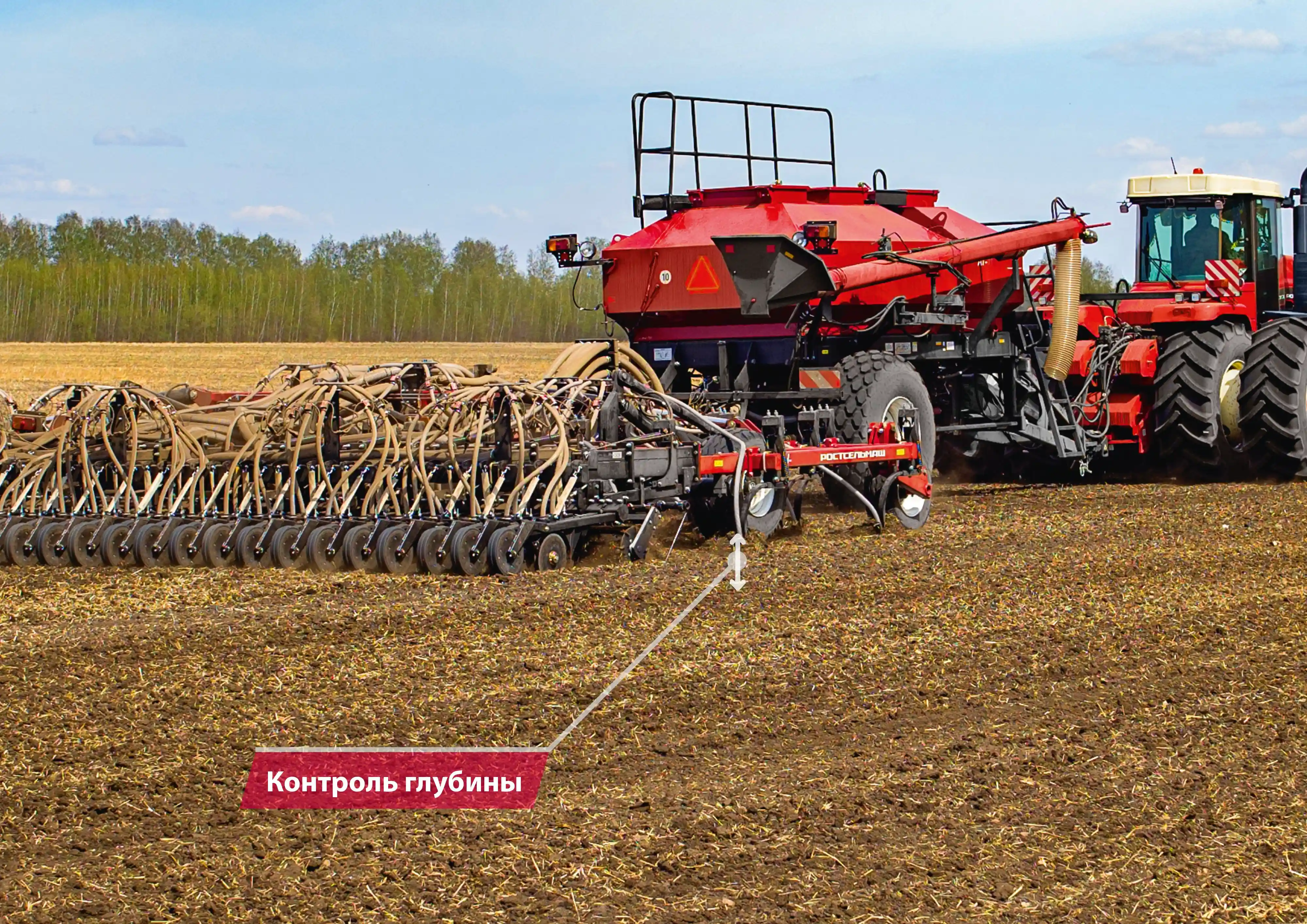 Контролирует правильность выполнения операций Беспроводные датчики системы точного земледелия измеряют глубину обработки, определяют положение орудия (транспортное/рабочее) и скорость обработки и передают данные в платформу агроменеджмента РСМ Агротроник.