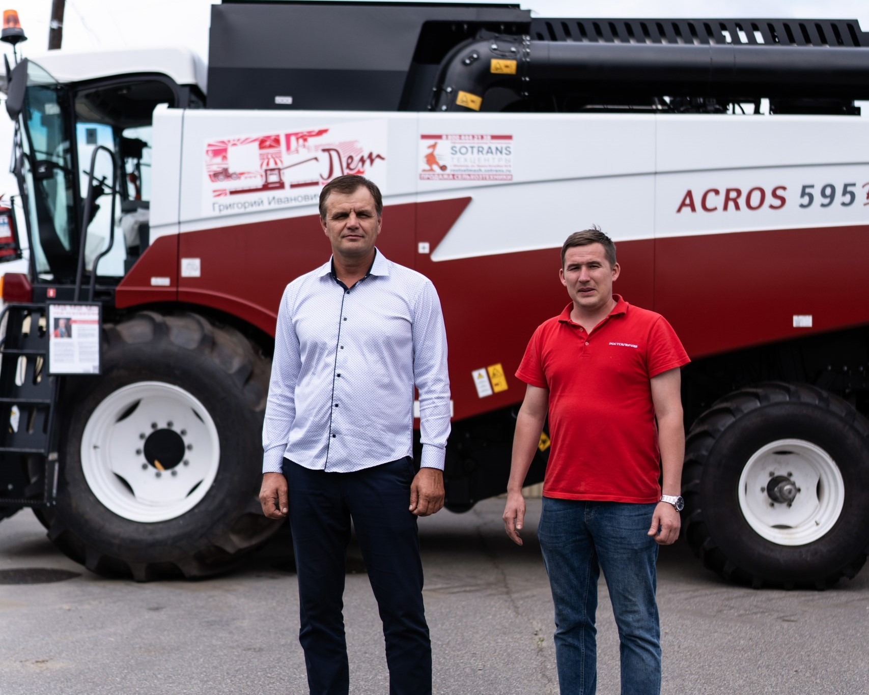 Юрий Владимирович Комаров, глава крестьянско-фермерского хозяйства, принял ключи от своего нового комбайна на площадке ООО «Техцентры Сотранс», официального дилера Ростсельмаш.